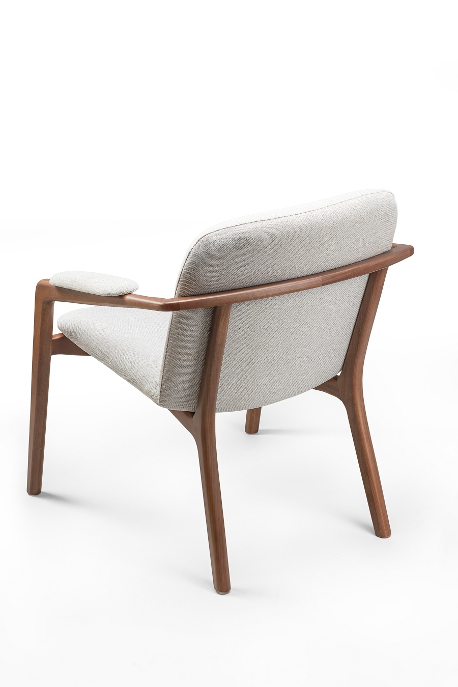 Estrutura em madeira maciça. Assento e encosto tapeçados.