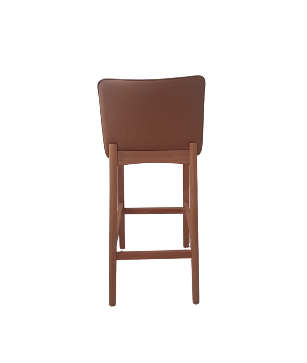 Banqueta com estrutura em madeira maciça, encosto e assento estofado. Duas opções de altura.