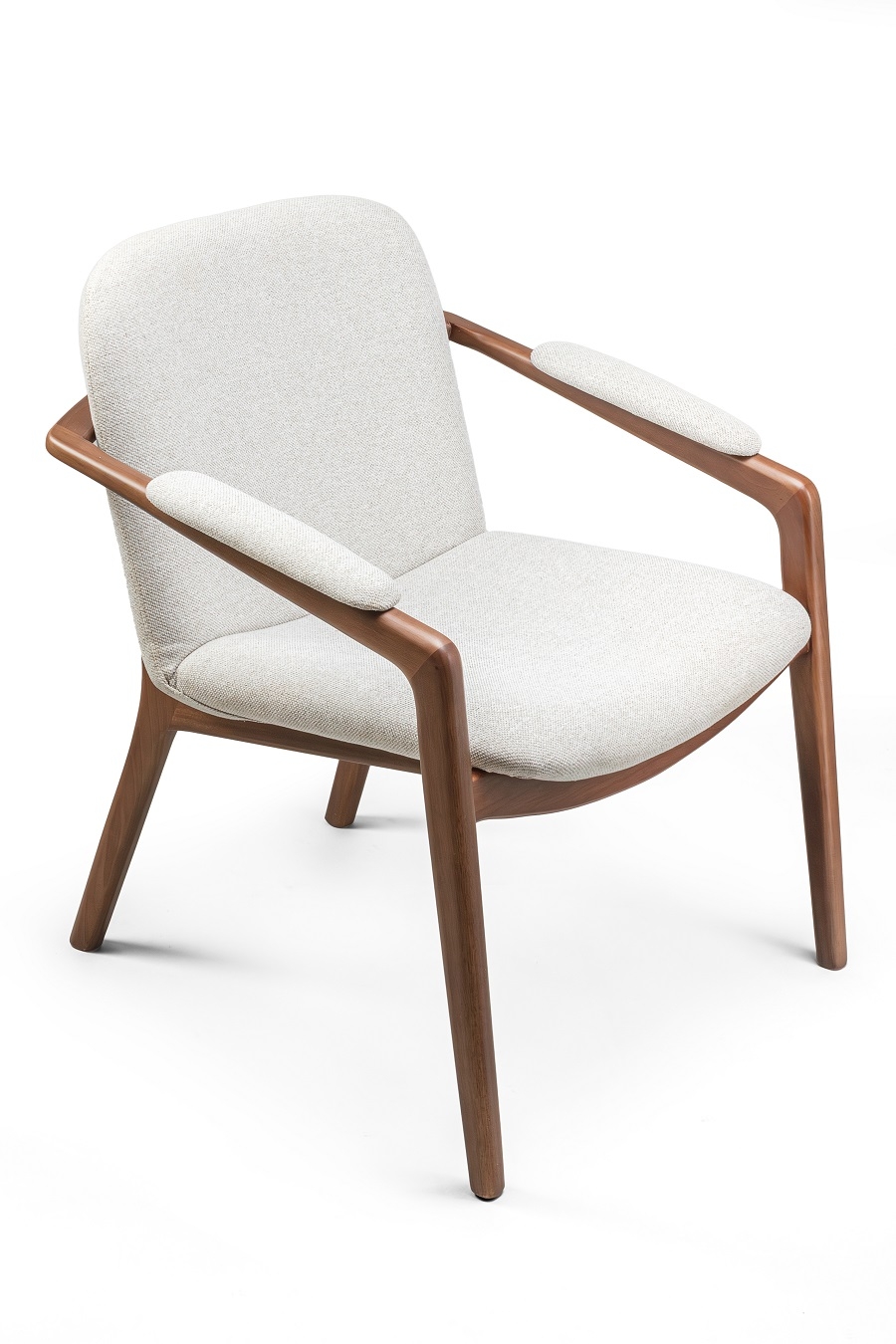 Estrutura em madeira maciça. Assento e encosto tapeçados.